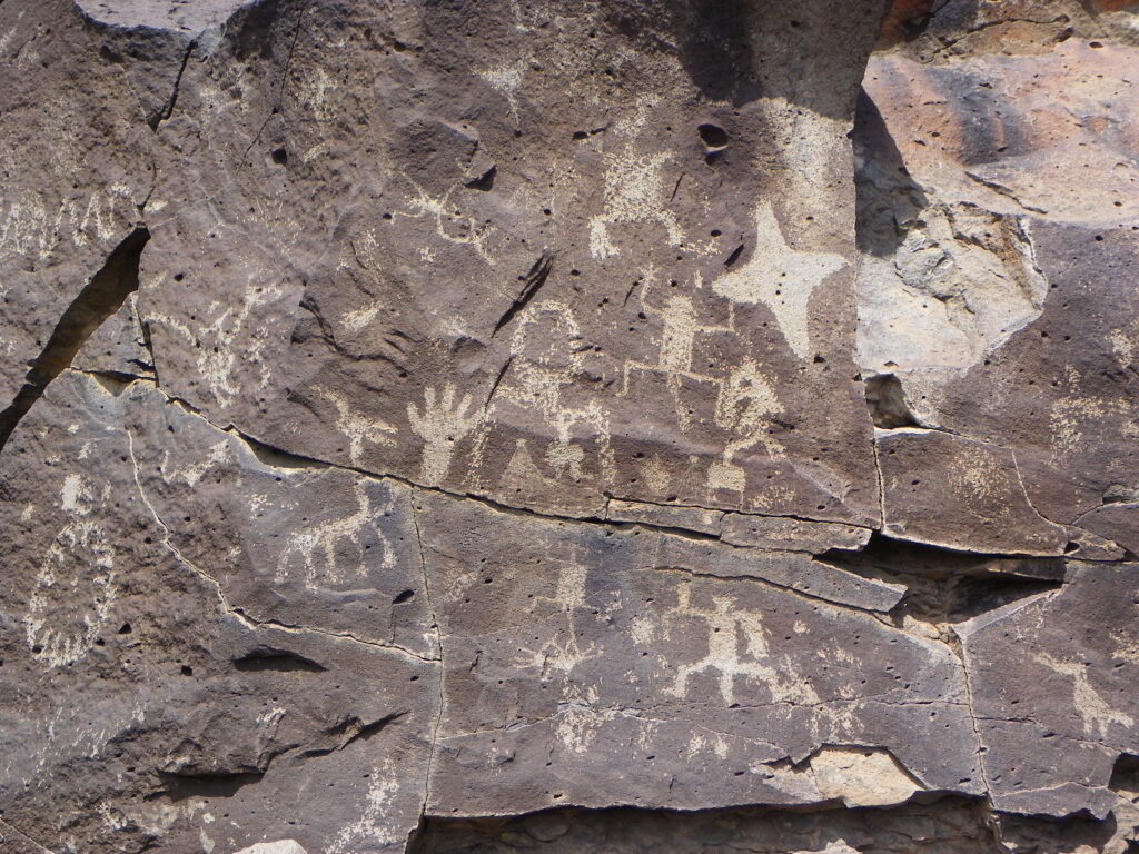 These petroglyphs date back from pre Colombian times by Pueblo natives and extend through Spanish Colonization timeframe and hold significant spiritual meaning for those who created them. It's important to be respectful of these carvings to preserve them and honor the meaning behind it.